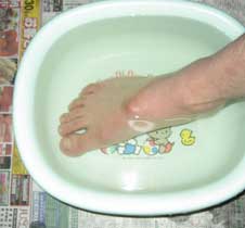そこで、酢の入ったお湯を入れ替えて、お湯で足を洗いました。